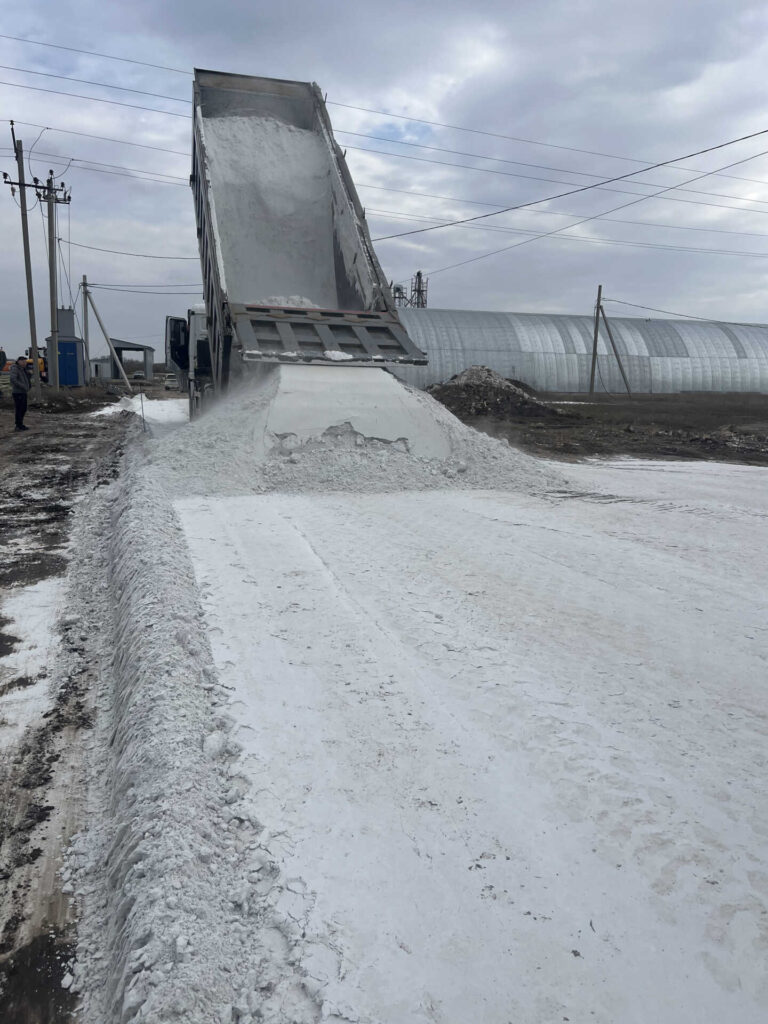 Укладка техногипса на объекте ООО «Красноярское» была выполнена с целью создания долговечного основания для круглогодичного содержания и кормления КРС. Территория объекта и подъездные пути к нему сначала тщательно подготовили. Затем, за один день, произвели доставку, разравнивание и уплотнение материала. Задача выполнена в кратчайший срок благодаря слаженной работе опытных специалистов ООО «РТС» и современной технике, имеющейся у компании в собственности.
