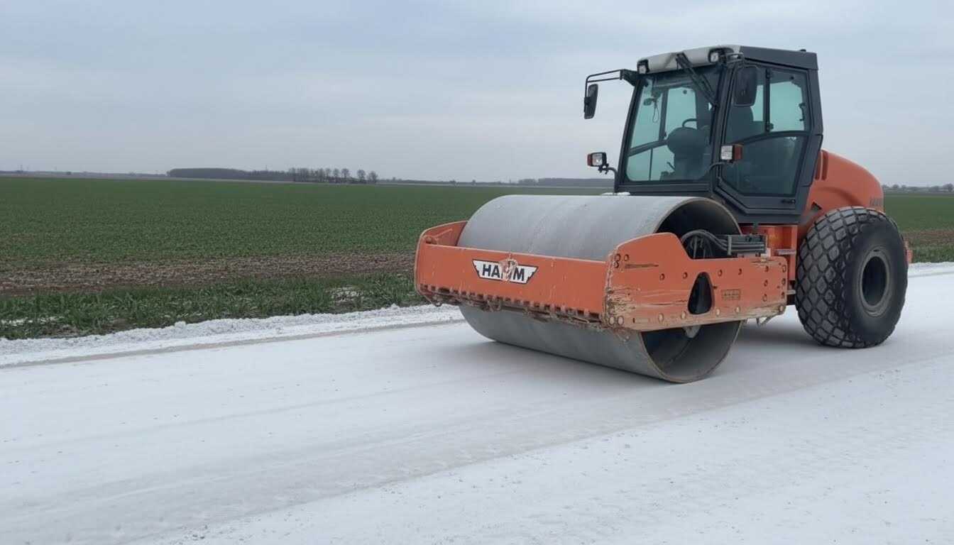Техногипс – инновационный материал для строительства и реконструкции автомобильных дорог III-V категорий. Полугидрат сульфата кальция (CaSO4 · 0,5H2O), образуется при производстве экстракционной фосфорной кислоты, соответствует СТО 00203938-001-2025. Используется в качестве одного из слоёв дорожной одежды или самостоятельно без защитного покрытия при устройстве просёлочных дорог, технологических проездов и площадок.